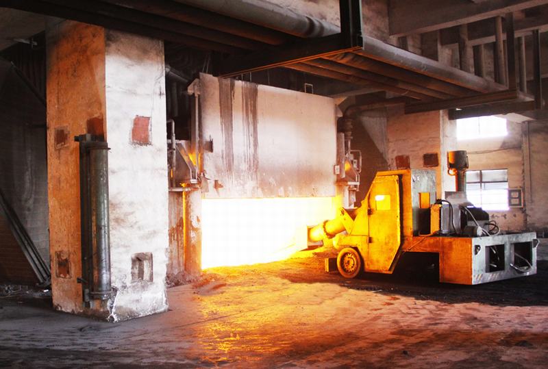 搗爐機正在對錳硅礦熱爐內(nèi)的料面進(jìn)行維護